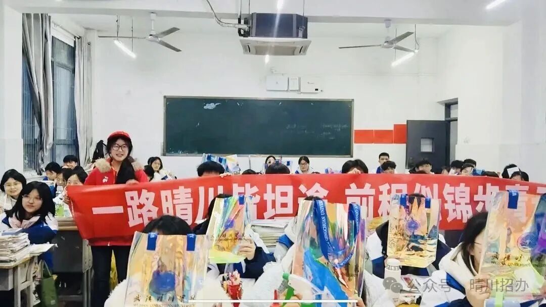 本次宣讲通过图文宣讲、实景展示、现场答疑、礼品互动等形式,有效提升了武汉晴川学院在母校的知名度与影响力,同学们反响积极、报考意向浓厚;本次活动既助力招生宣传,也为高三学子明确了方向、缓解了学习上的焦虑。