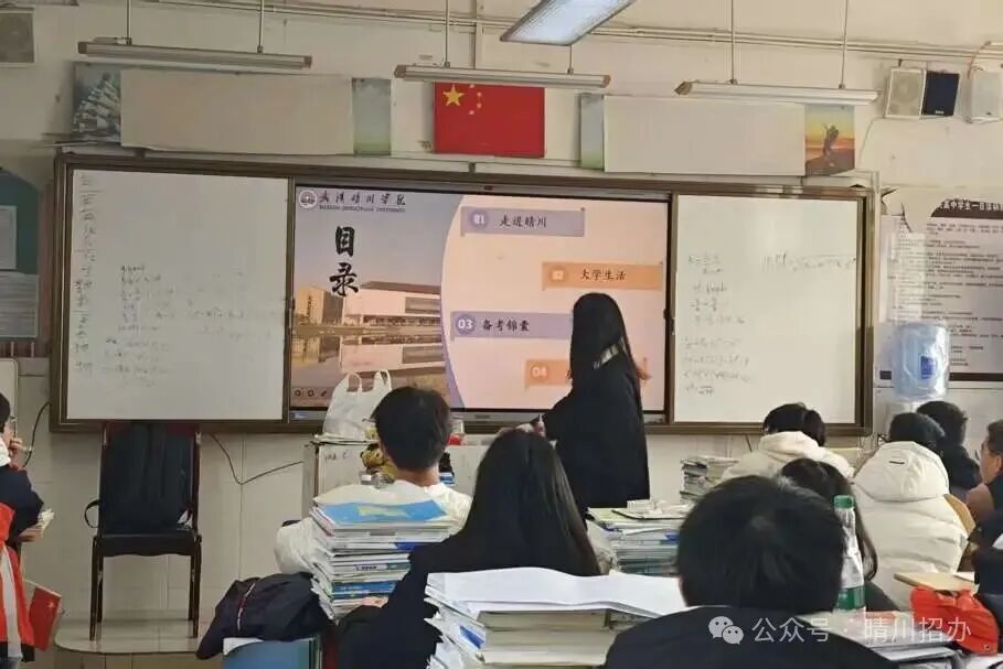 宣讲现场回访团队为学弟学妹们发放了招生物资、报考指南,并用神仙宿舍、宝藏图书馆等实拍素材,搭配学科竞赛、社团活动等内容,立体展现晴川“实力与颜值并存”的校园形象。