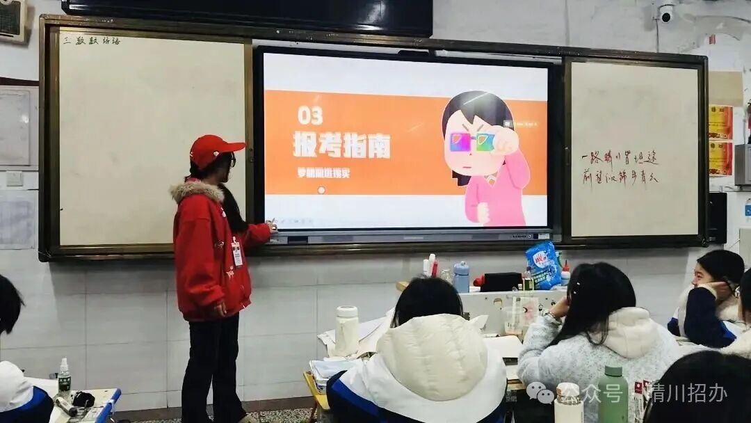 本次宣讲面向高三两个班级100余名学生开展,团队同学围绕走进晴川、大学生活、备考锦囊、互动答疑四大板块,系统介绍学校办学特色、师资力量、专业设置、录取分数线,并结合自身经历分享高考备考技巧;宣讲现场氛围热烈,活动后搭建QQ群提供持续线上答疑。