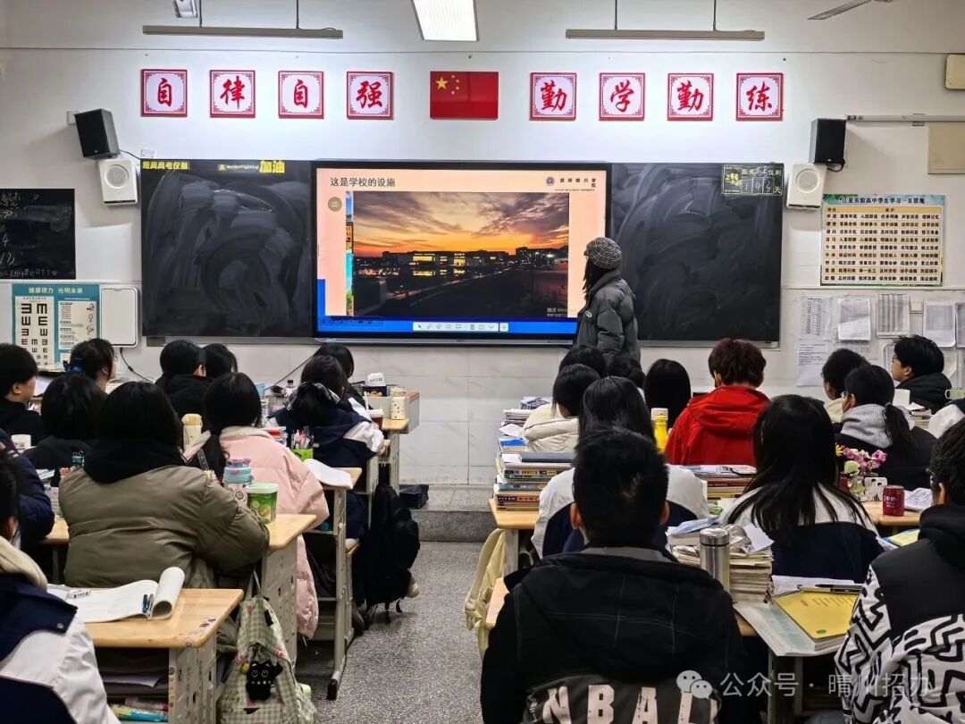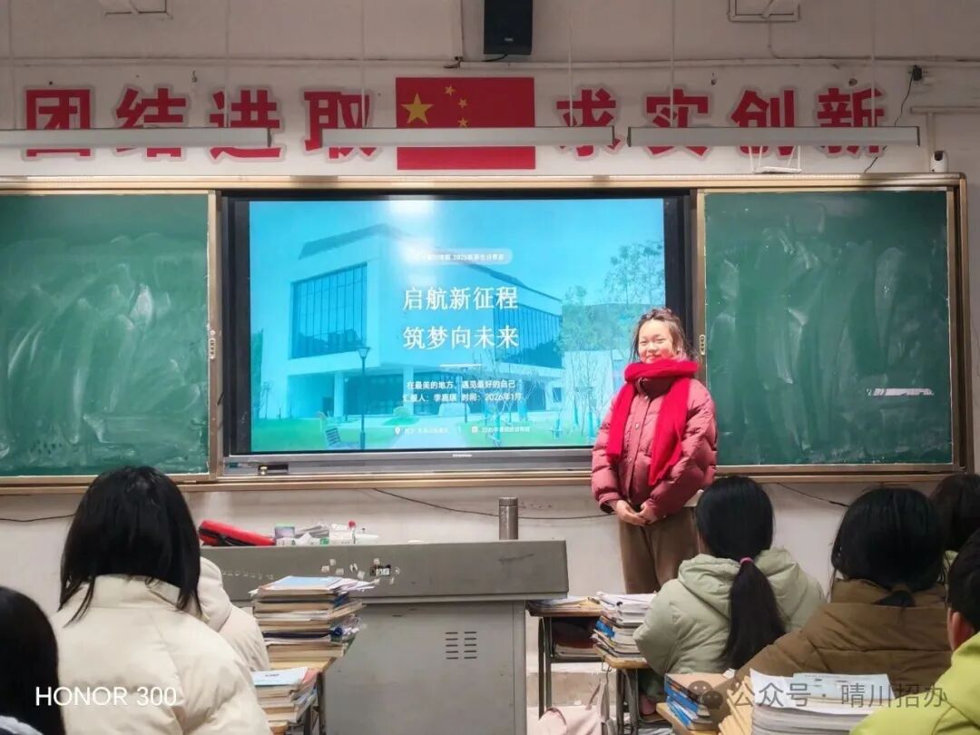 团队精心制作了PPT和高考加油视频,提前与母校老师沟通,确定了宣讲班级和时间。进入班级后,团队成员分享了武汉晴川学院的专业特色、校园生活和升学优势,并针对高三学生关心的备考问题进行了细致解答。宣讲过程中,同学们互动积极,最后合影留念。