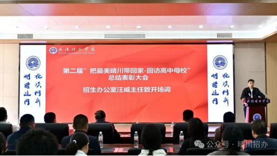 招生办公室主任汪威首先对所有参与该项活动的学生们表示感谢,希望此次受到表彰的同学珍惜荣誉,继续发挥带头作用,其次,他希望同学们以此次活动为新的起点,继续当好学校的宣传员、代言人,以实际行动鼓励更多晴川学子积极参与回访高中母校活动,贡献青春力量,最后,他希望同学们把这次活动中的收获带到今后的学习和生活中,继续关心、支持学校的招生宣传工作。
