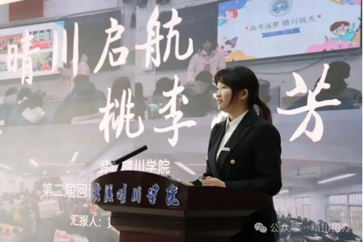 王贝贝同学的汇报主题为《山水育英才,晴川向未来》,借家乡山水之灵秀,讲述晴川如何滋养青春理想与品格,以开阔视野展望个人与母校共赴的美好明天。