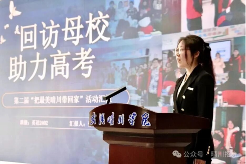 多名优秀学生依次上台发言,凭借充沛的激情与严谨的逻辑,细致呈现了“把最美晴川带回家”回访母校行动的珍贵收获。他们不仅描述了与昔日师生互动时的感人画面,还分享了从策划到执行阶段如何稳步推进、灵活调整,最终圆满落实各项工作的积极经验。